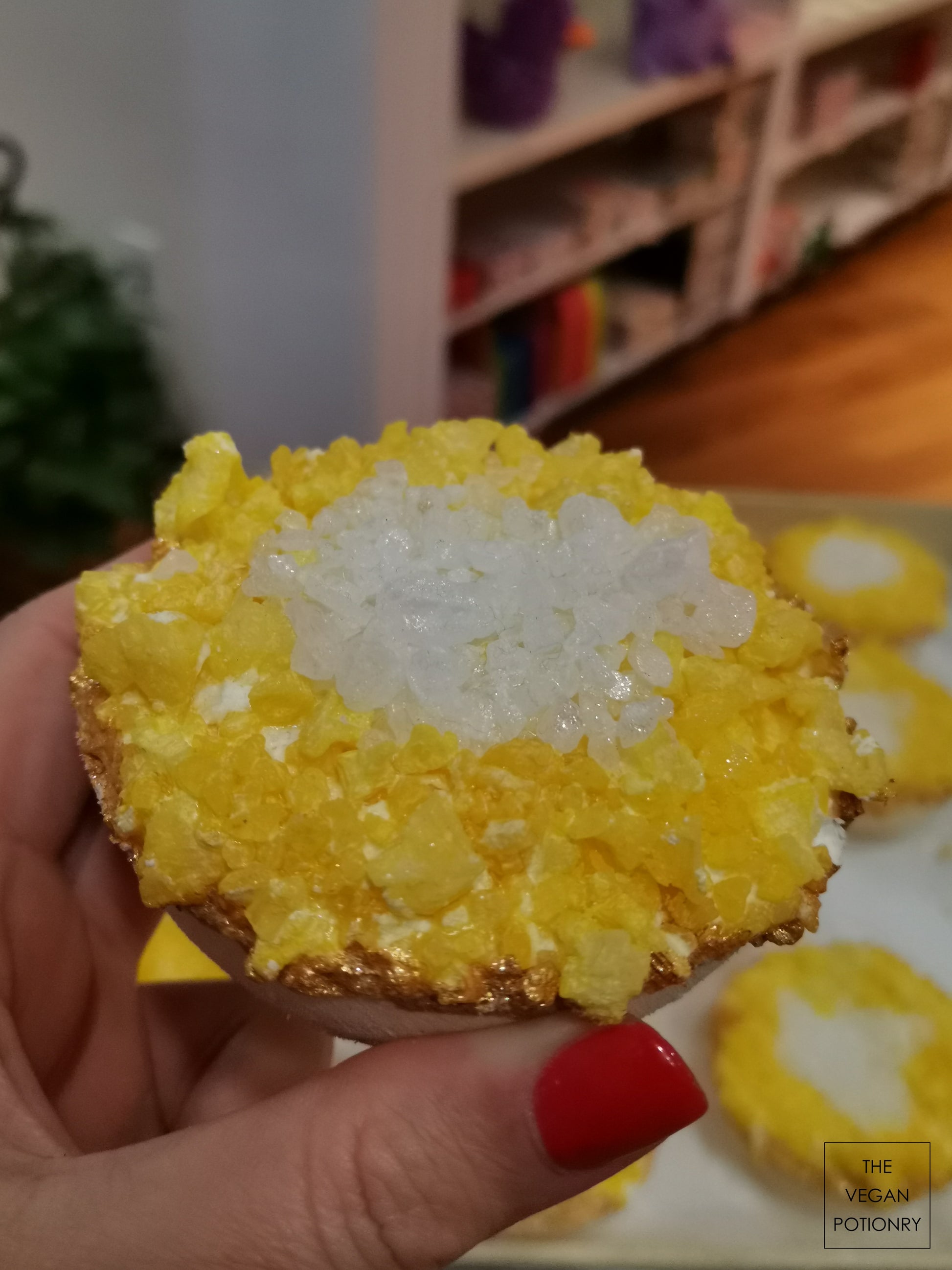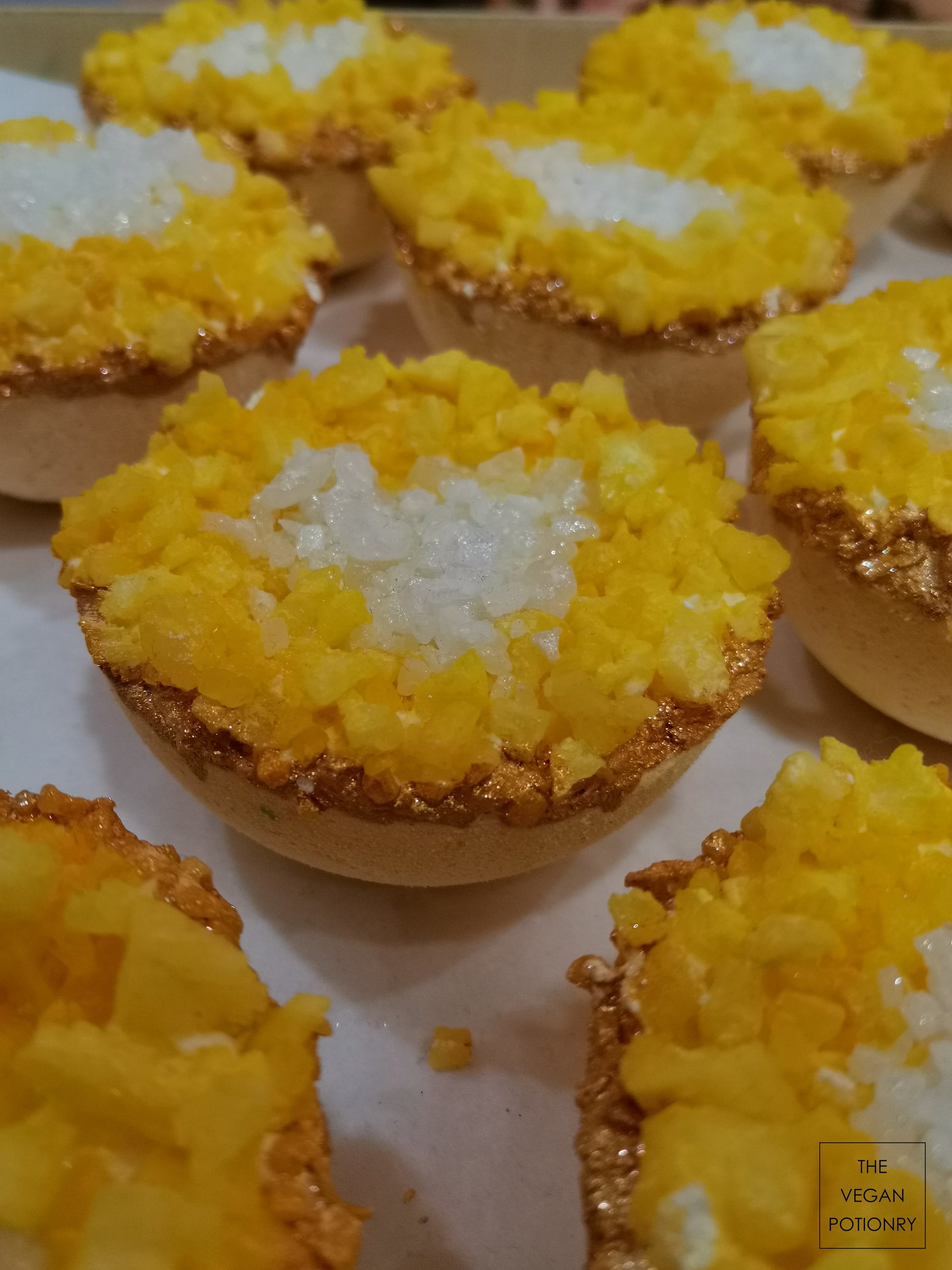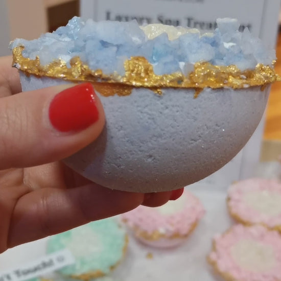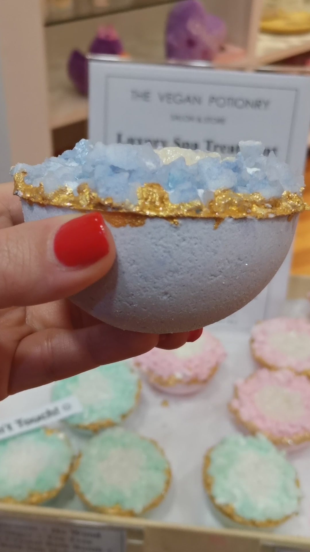 Transform your bath into a luxury spa retreat with our Cardamom + Citrus Geode Crystal Bath Bomb Bath Salt Hybrids exclusively from The Vegan Potionry. These one-of-a-kind bath soaks combine mineral-rich bath salts with a fizzy, herbal bath bomb for the ultimate at-home, spa-like body treatment. It’s like giving your entire body a rejuvenating facial to soothe sore muscles, stiff joints, cramps, and soften and detoxify the skin.