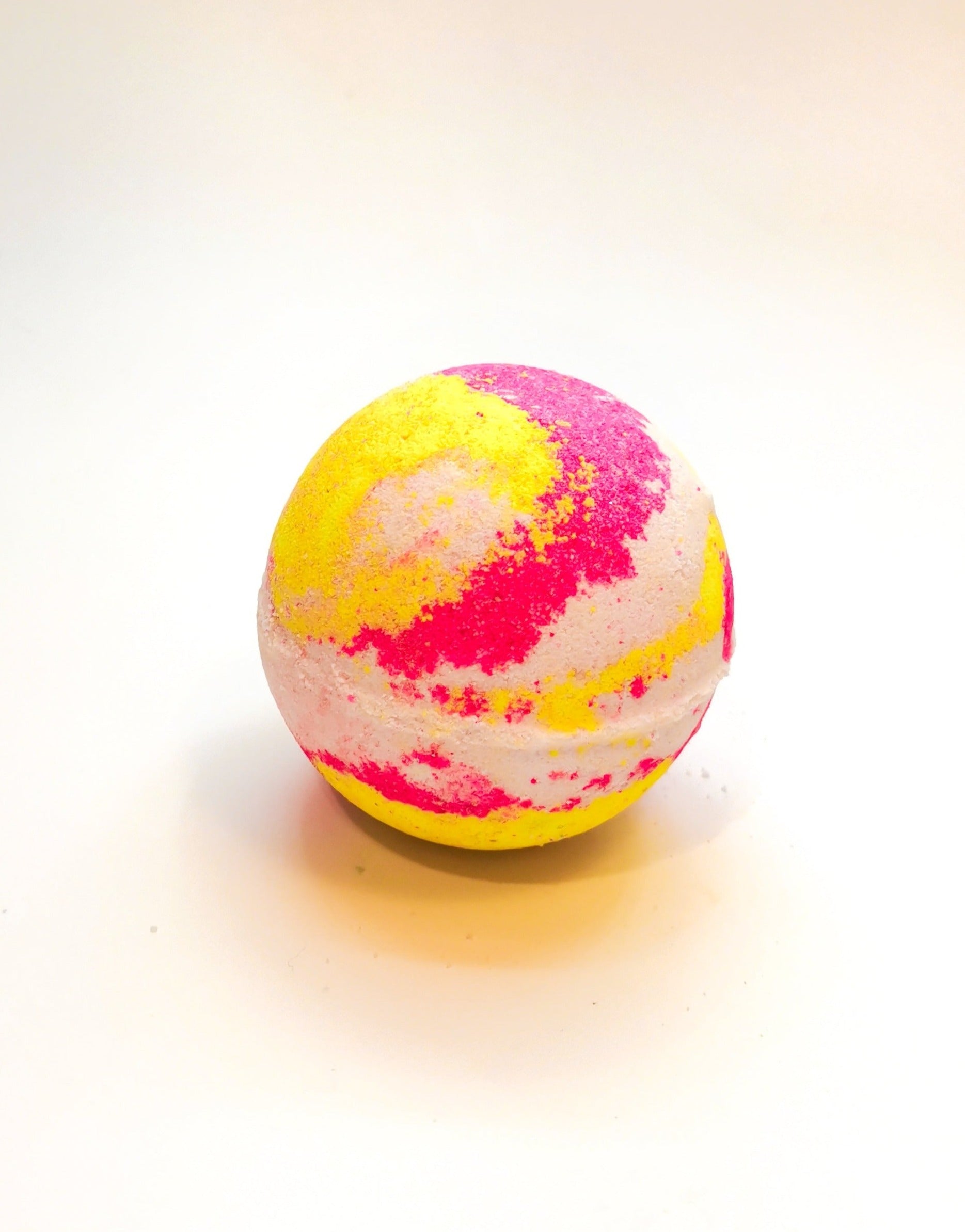 Drop one of these Strawberry + Pineapple bombs in your bath water and watch this mythical creation fizz, foam and release it's sweet scents and magical colors in your bath tub.