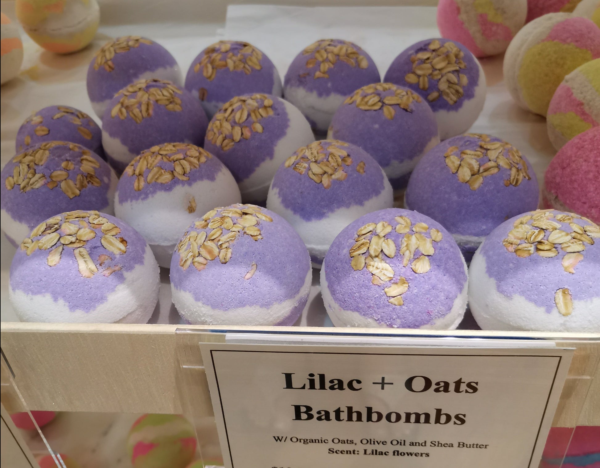 The Vegan Potionry's Lilac + Oats Bath Bombs are made with Organic and Fair Trade Shea Butter, Organic career oils and whole Oats without the use of naturally mined mica!