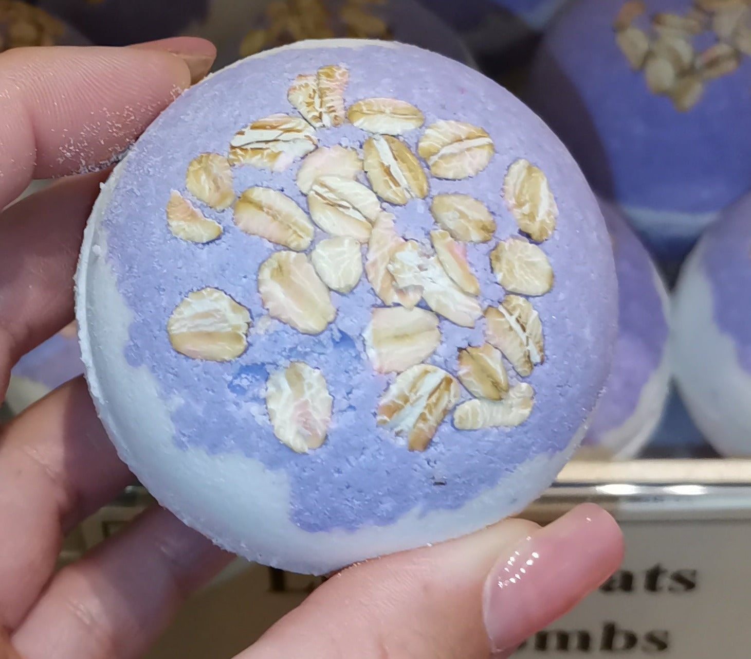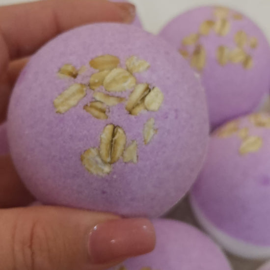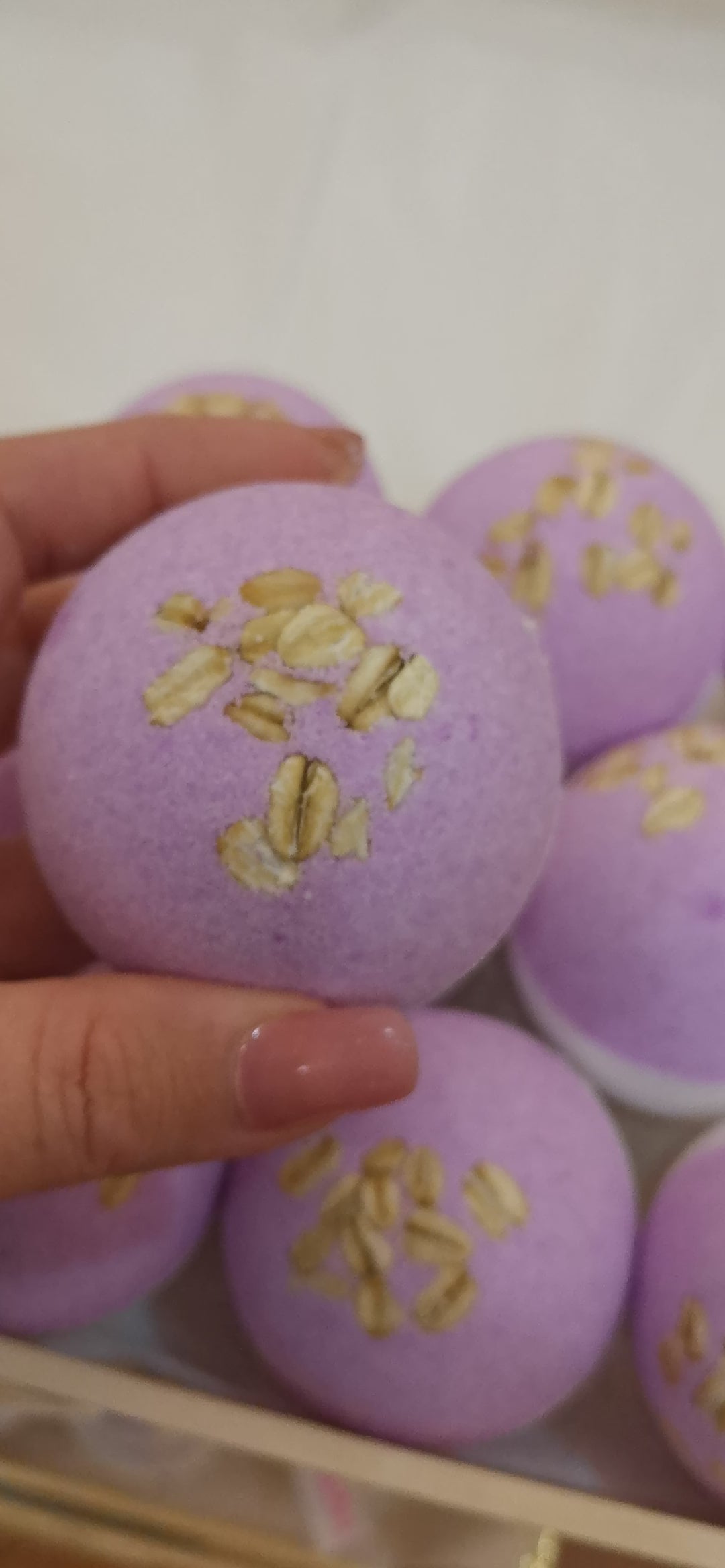These Lilac + Oats Bath Bombs come in size; Large (Regular Bath Bomb Size)!