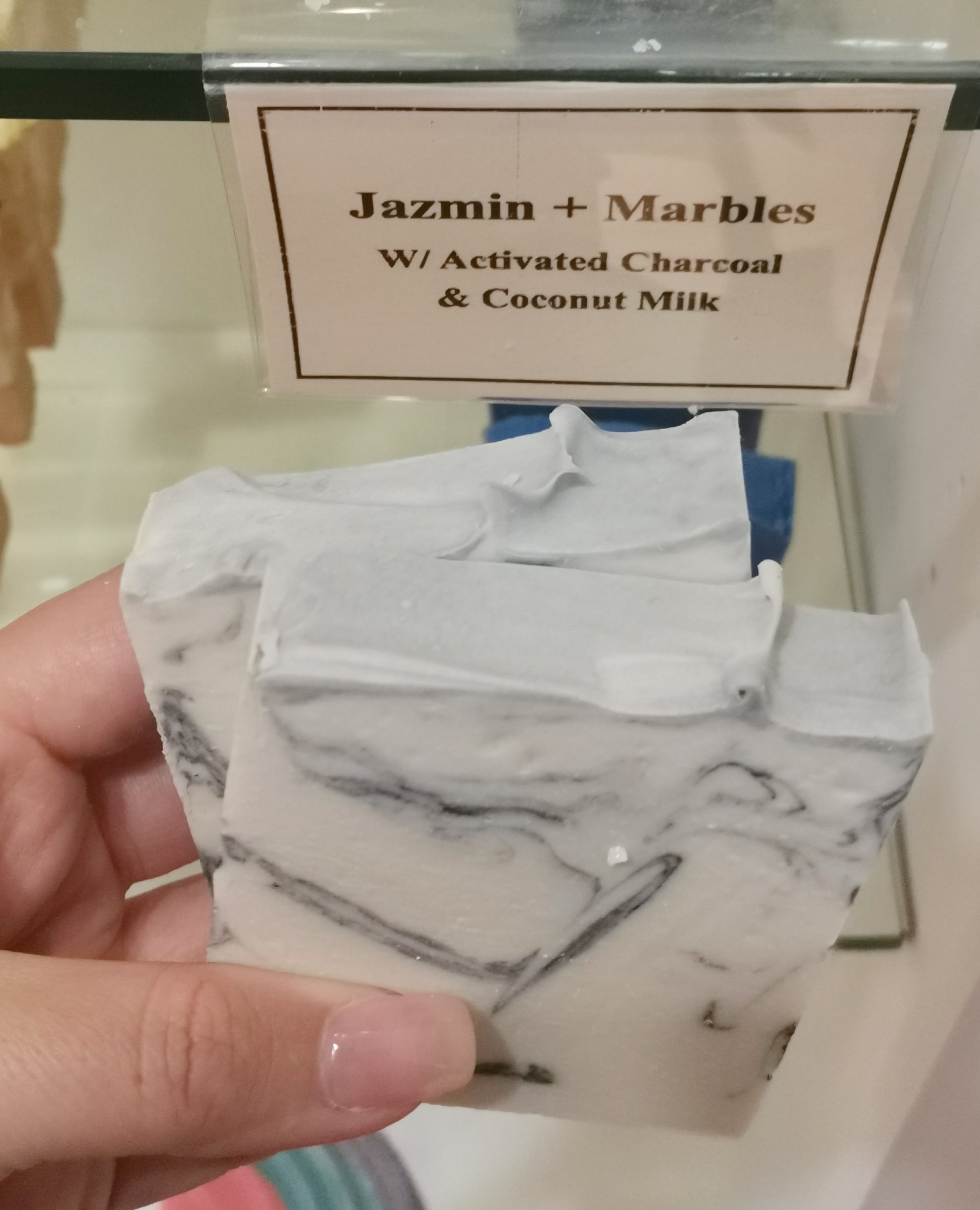This Jasmine + Marbles is Creamy, softening, hydrating, lathering Jasmine scented soap perfect for face and body.