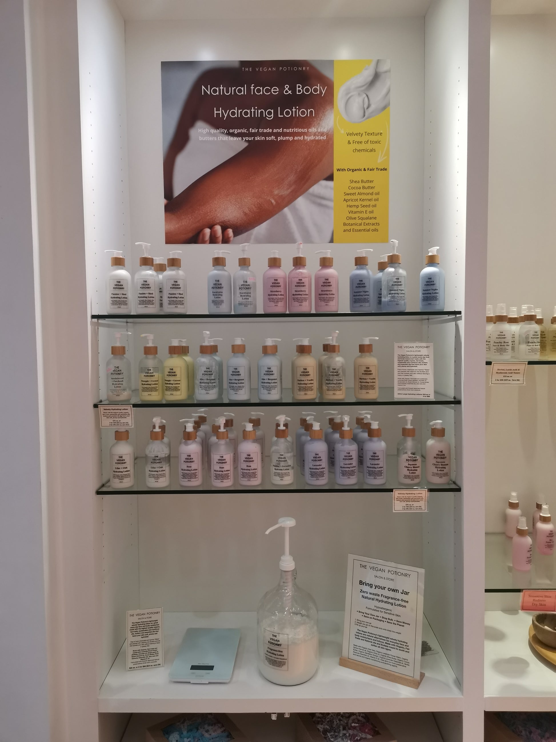 The Vegan Potionry's lightweight velvety hydrating lotion is a great every day face and body moisturizer made with high quality, organic, fair trade and nutritious oils and butters that leave your skin soft, plump and hydrated.