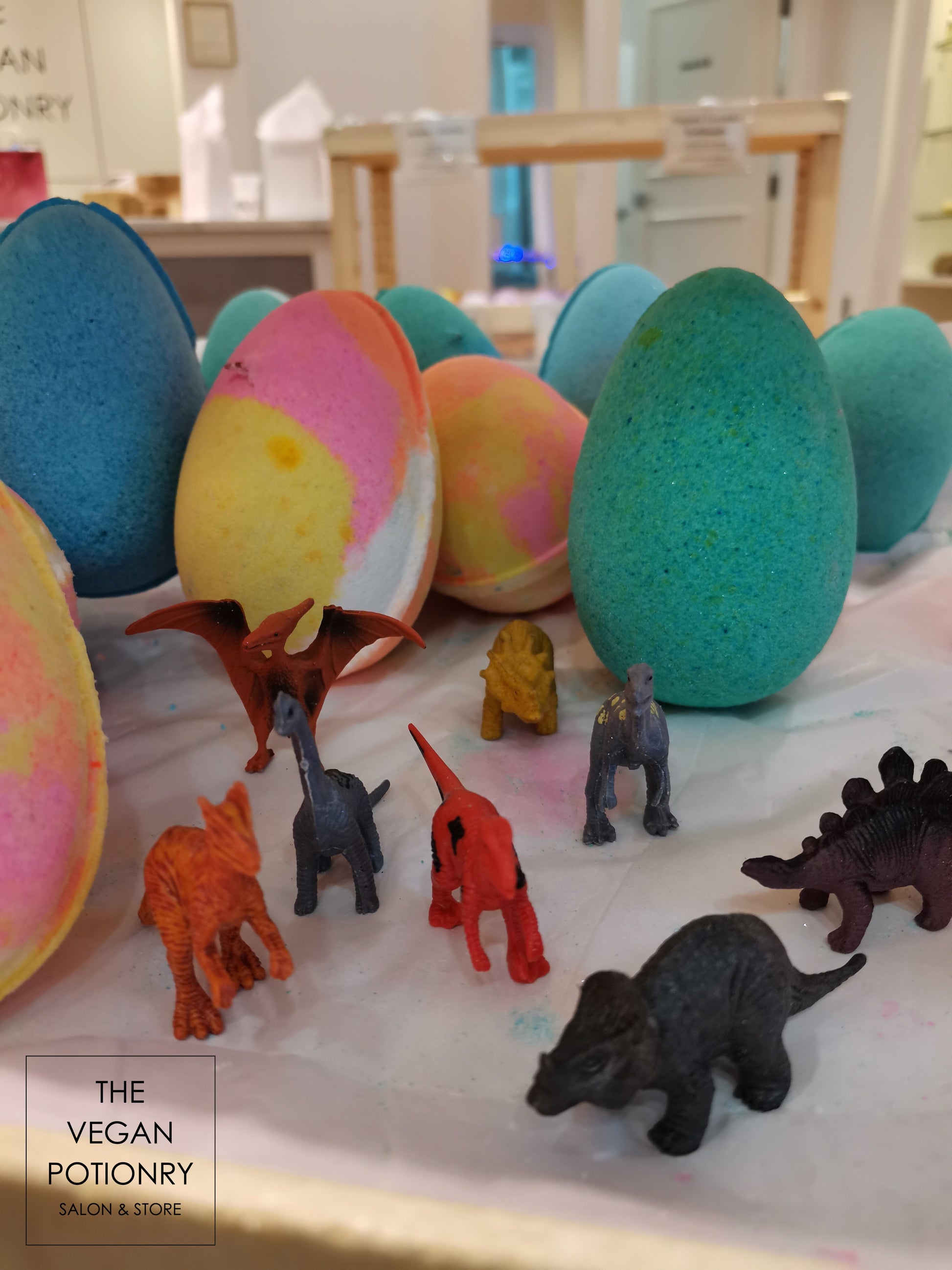 Dino Egg Bath Bombs with Dinosaur Toys Inside | The Vegan Potionry |