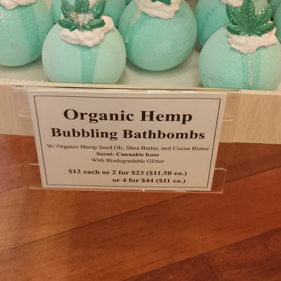 The Vegan Potionry's Hemp Bubbling Bath Bombs are made with Organic and Fair Trade Hemp Seed oil, Cocoa Butter, Shea Butter, olive oil and Kaolin Clay for a creamy foamy texture without the use of naturally mined micas or sulfates!