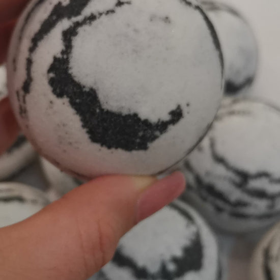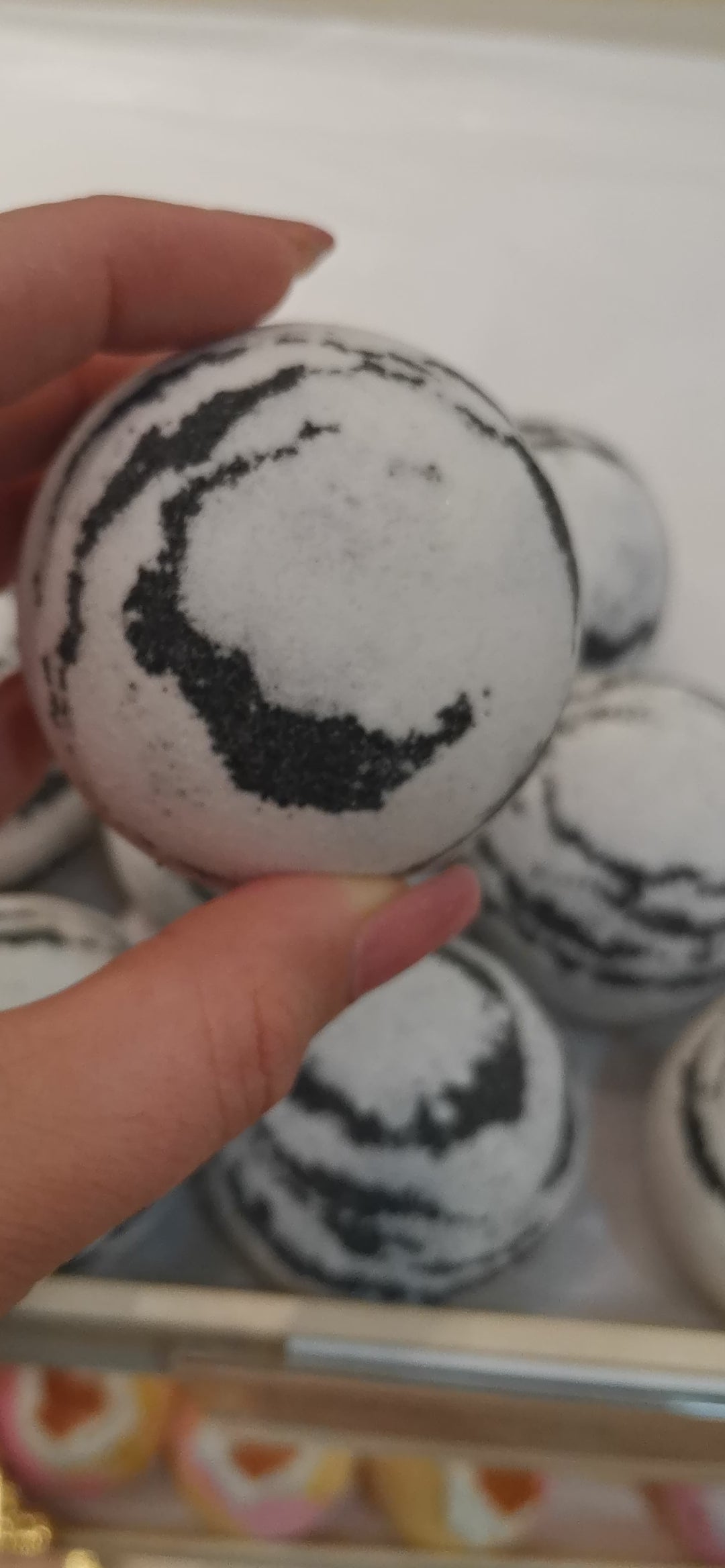 The Jasmine + Marbles Bath Bombs smell like relaxing and beautiful Jazmin flowers perfect for Jazmin lovers. The Jazmin + Marbles Bath Bomb is pigment free and contains activated charcoal that detoxifies skin and clears out pores.
