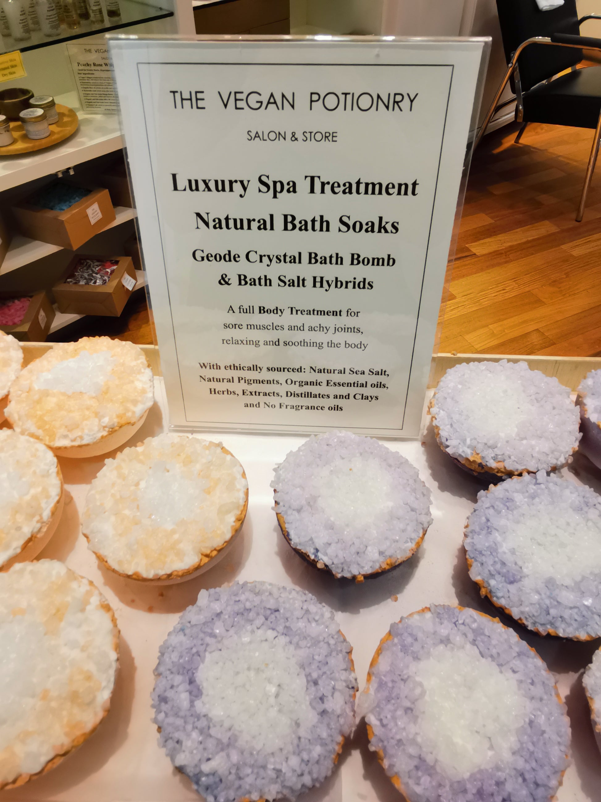 Exclusive to The Vegan Potionry, these one-of-a-kind bath soaks combine mineral-rich bath salts with a fizzy, herbal bath bomb for the ultimate at-home, spa-like body treatment. It’s like giving your entire body a rejuvenating facial to soothe muscle pain, joint pain, cramps, and soften and detoxify skin.