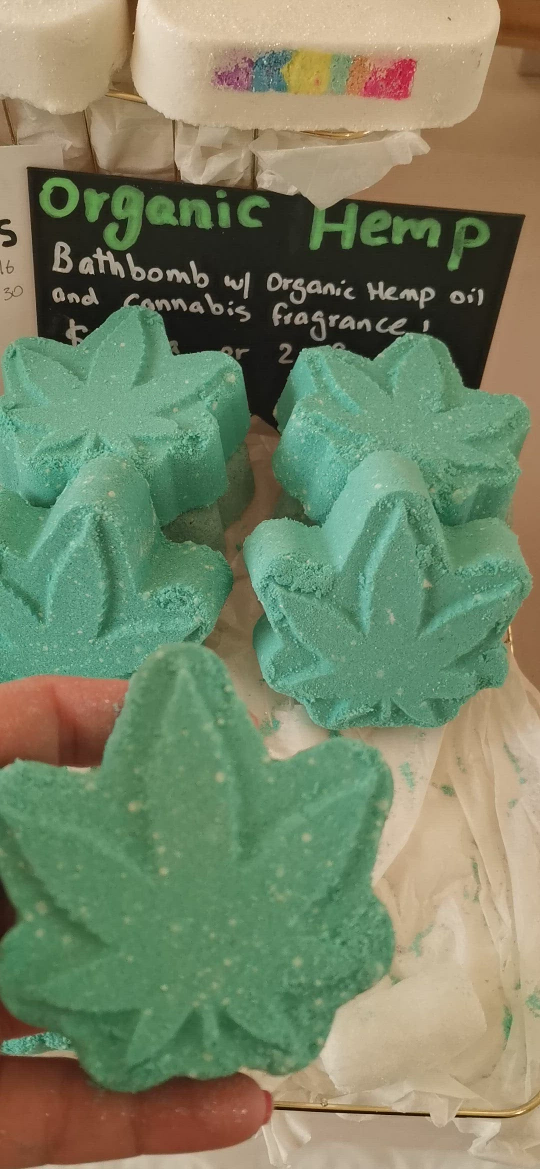 The Vegan Potionry's Calming and refreshing Organic Hemp Bath Bombs are made with Organic Hemp Seed oil and Cannabis Rose Fragrance, that has a refreshing / herbal / semi sweet scent perfect for a relaxing yet exciting bath