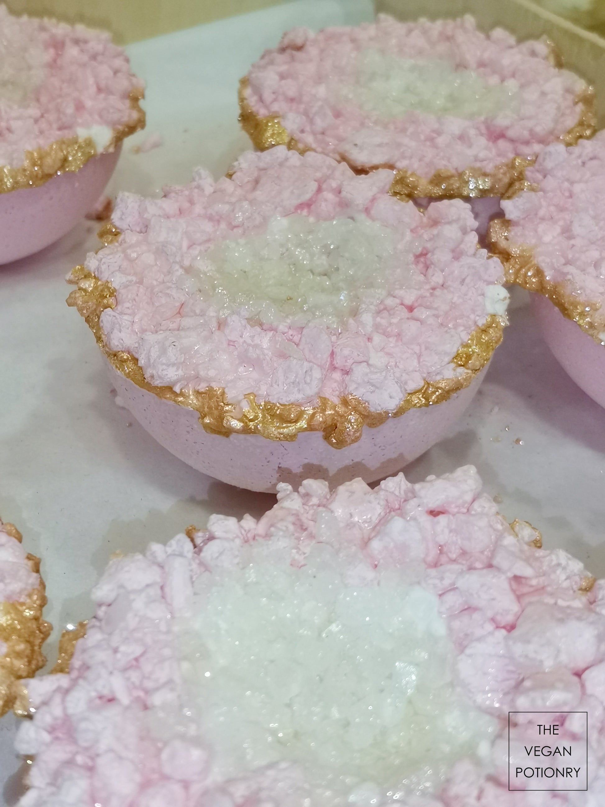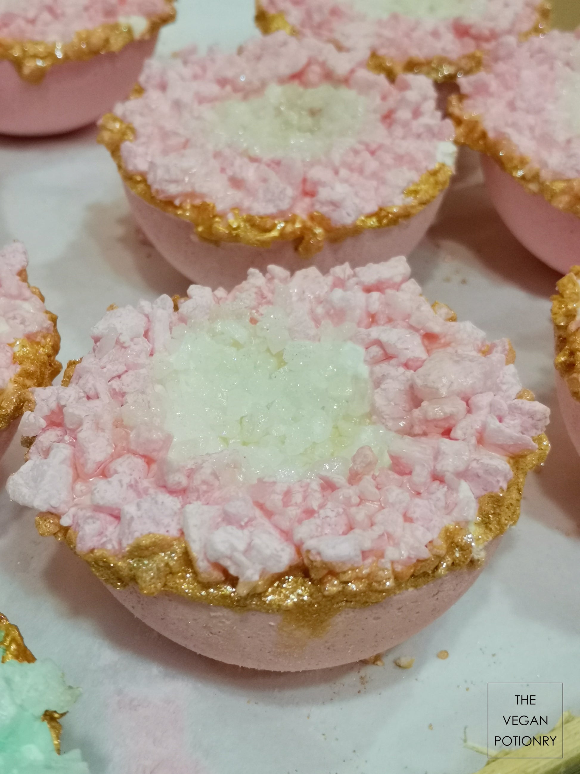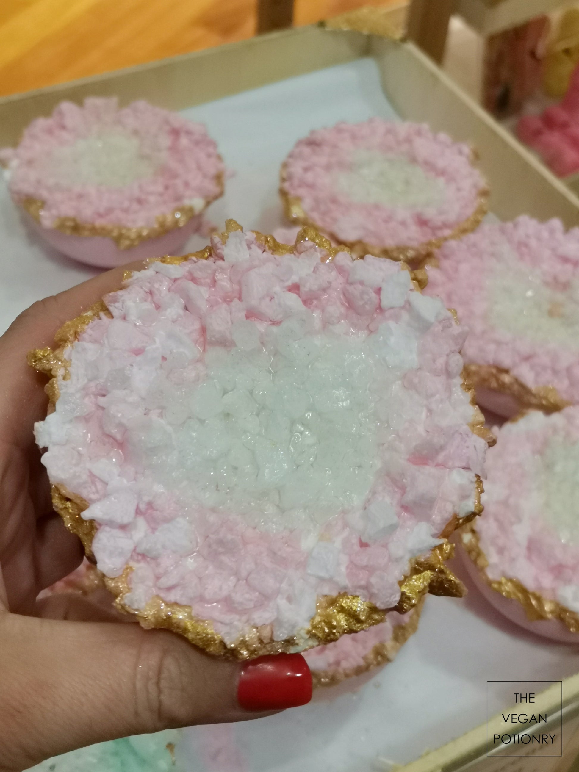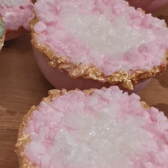 Pink Lemongrass + Coconut + Cedarwood + Lemon Geode Crystal Bath Bomb Bath Salt Hybrids