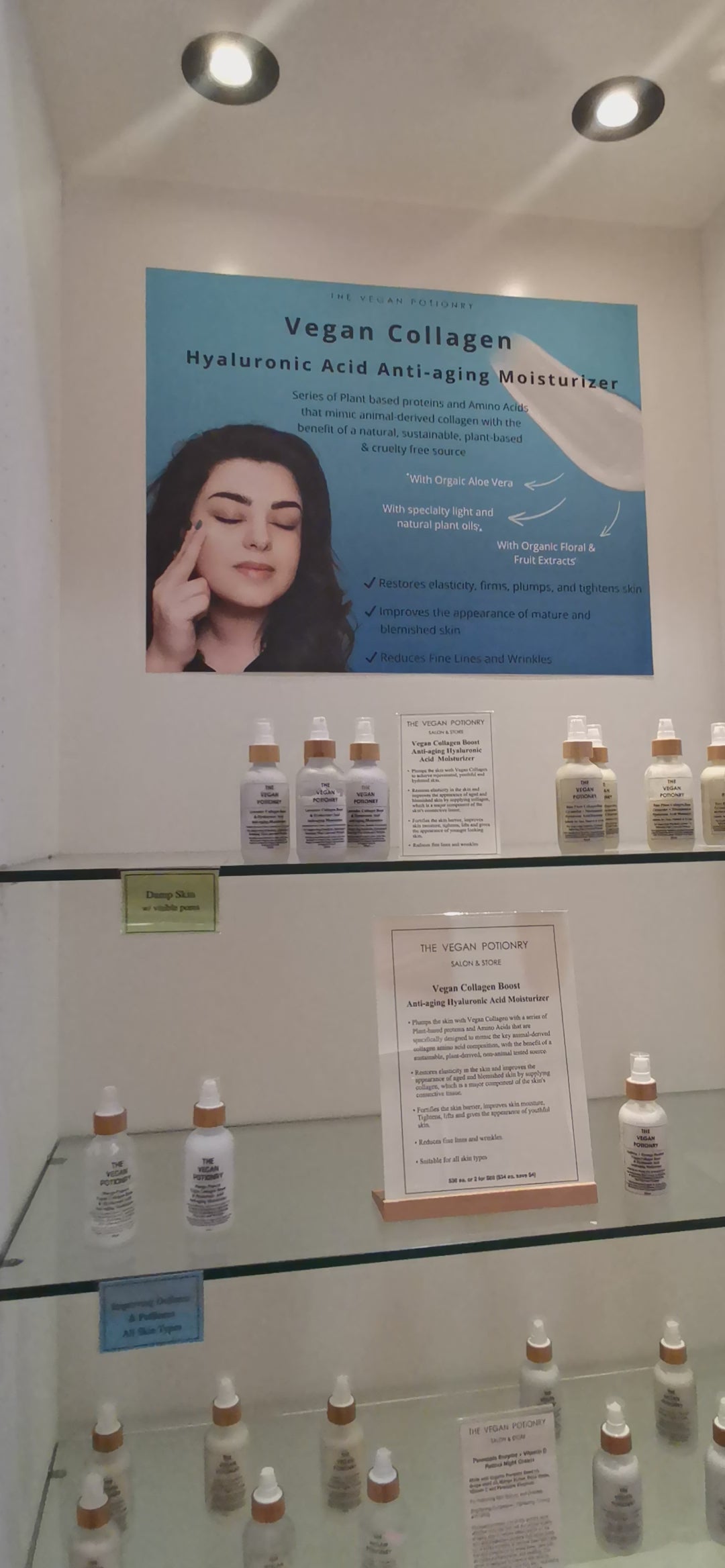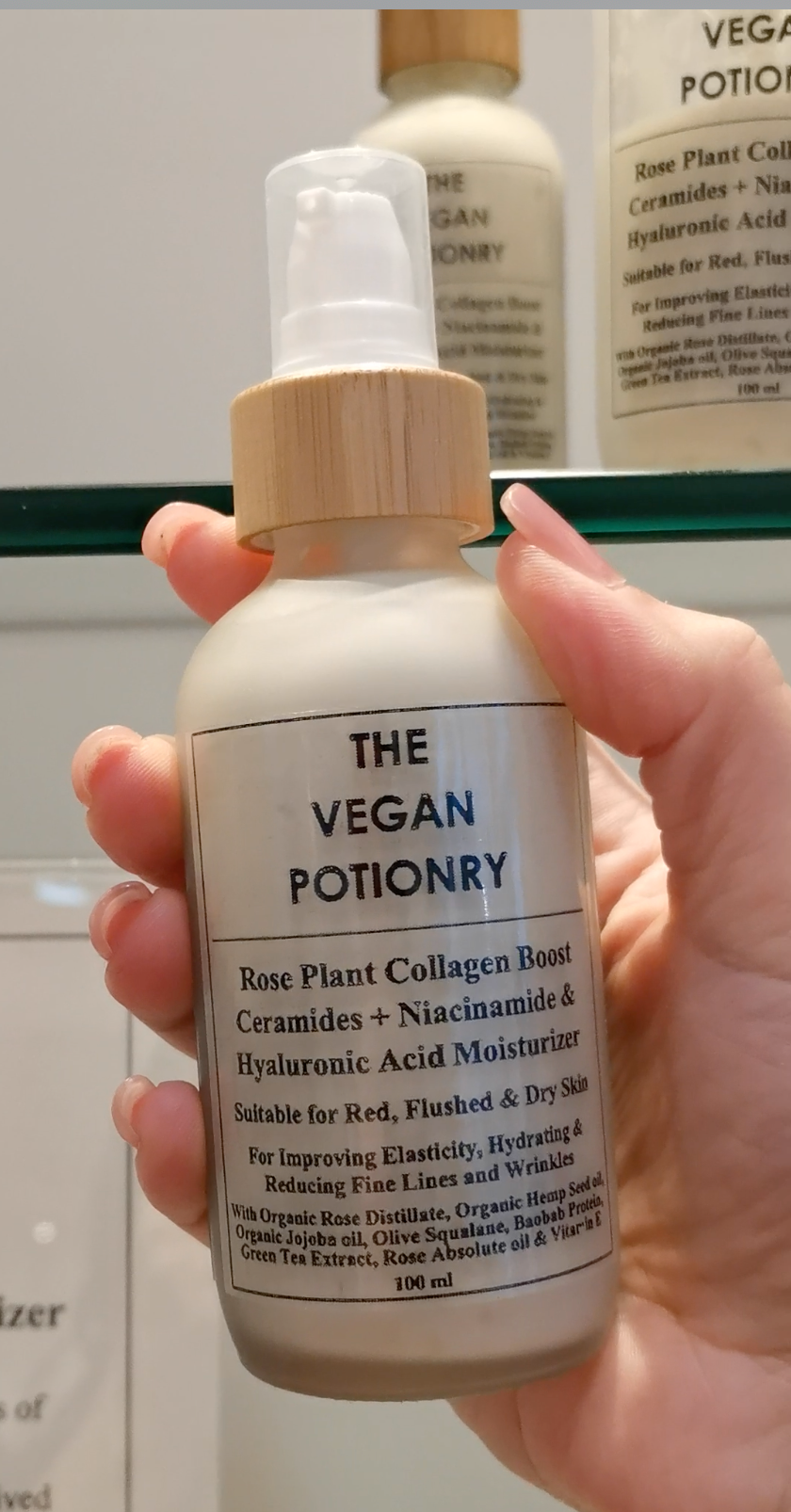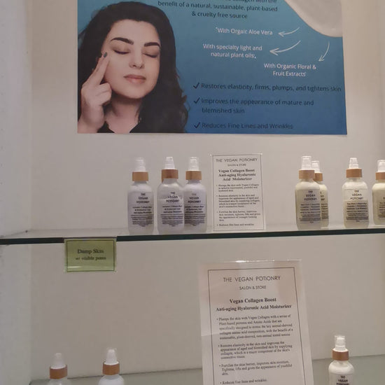 The Vegan Potionry's Vegan Collagen Boost moisturizers plump the skin with a series of Plant based proteins and Amino Acids that are specifically designed to mimic the chemical composition of animal-derived collagen with the benefit of natural, sustainable, plant-based and cruelty free sources.