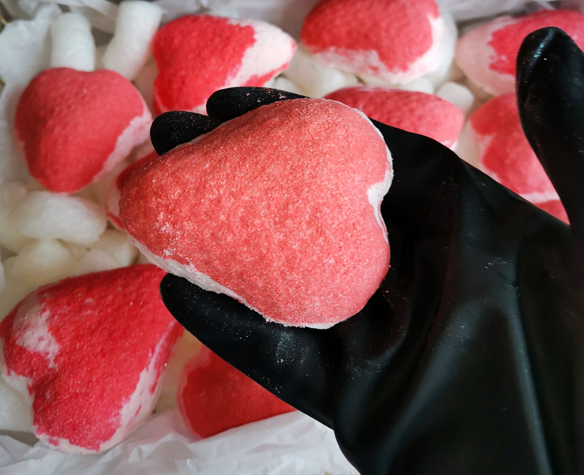 These Strawberry bath bombs are perfect for Strawberry lovers. They smell like delicious sweet strawberries and turn your bath water into a beautiful pink/red color!
